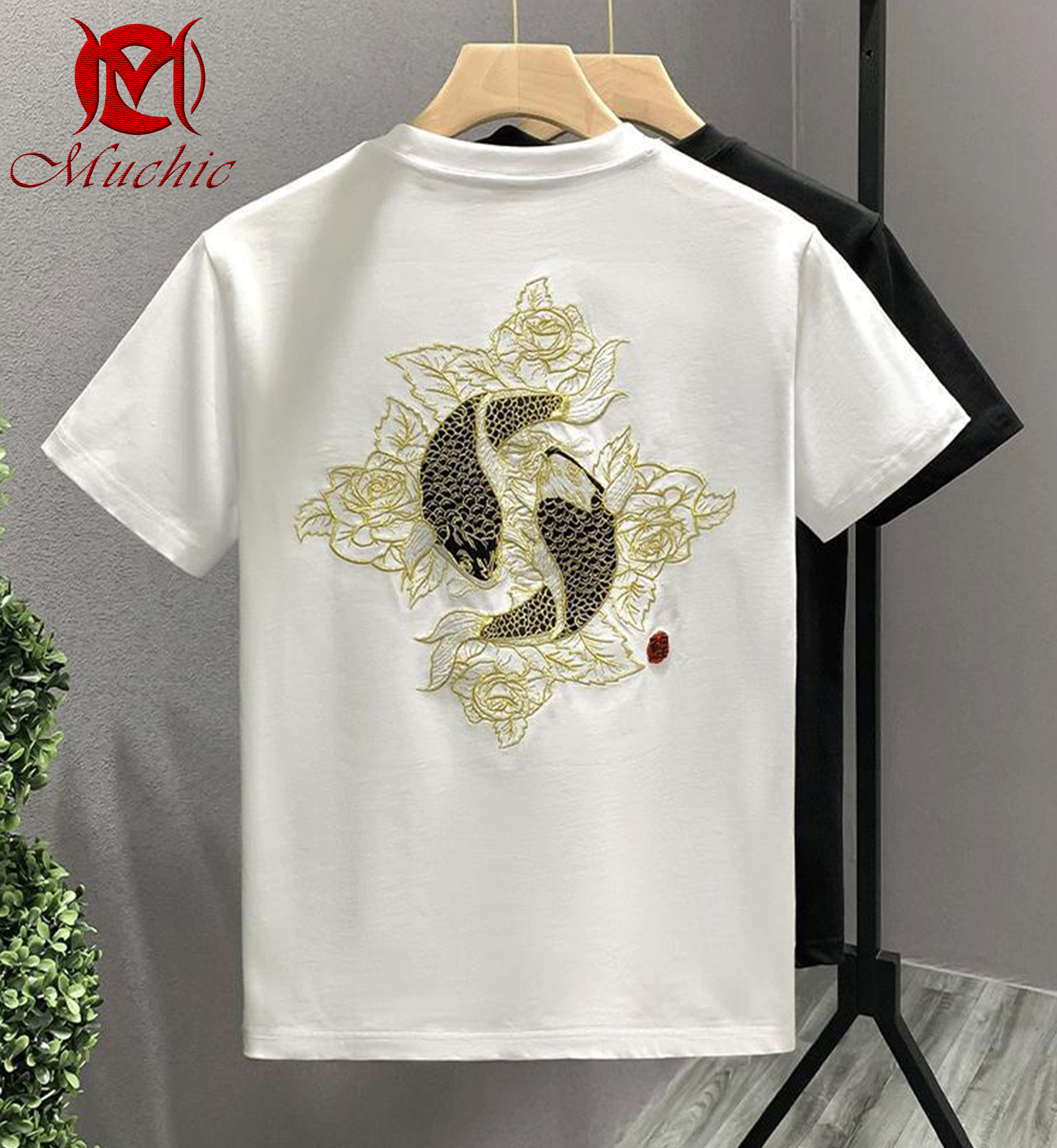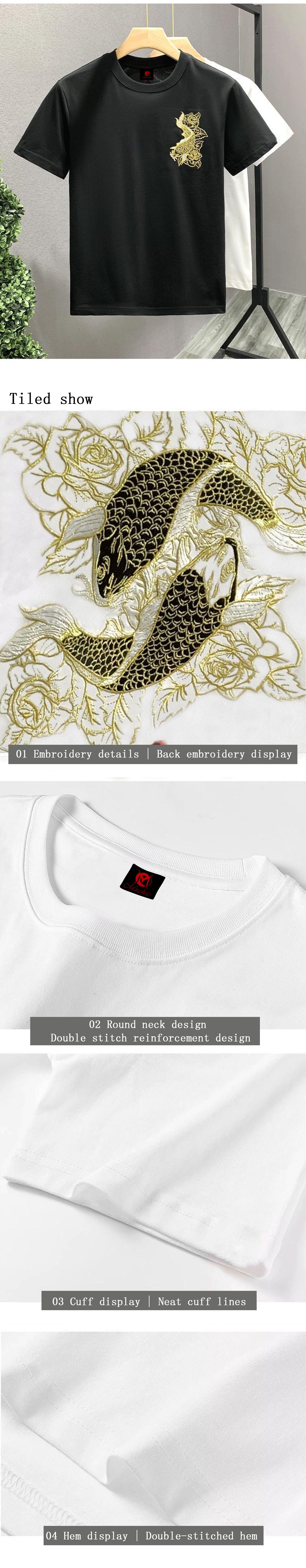 Unisex Intangible Cultural Heritage Twin Goldfish Embroidered T-shirt(Hand Embroidery)(duty free)