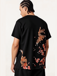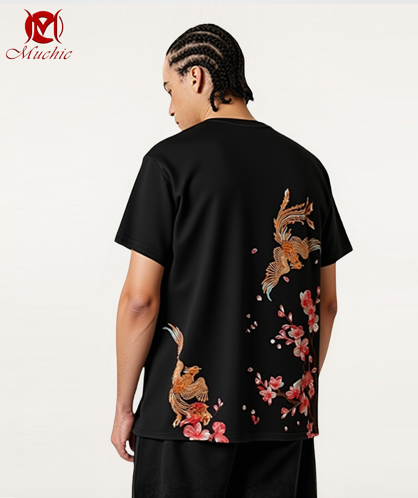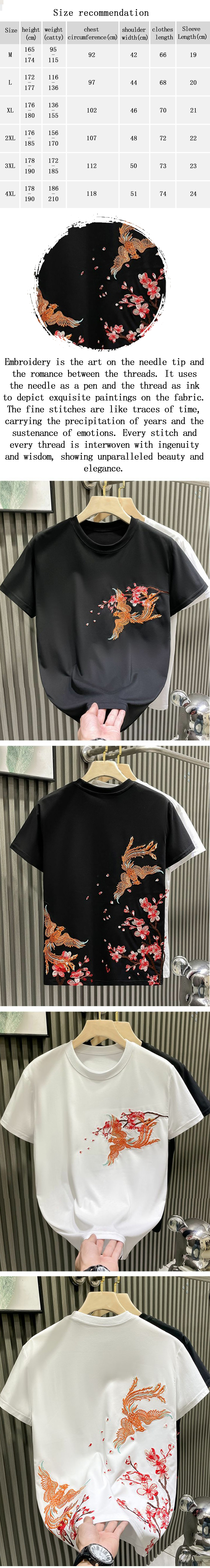 Unisex Intangible Cultural Heritage Double Phoenix Plum Blossom Embroidered T-shirt (Hand-embroidered) (Duty Free)