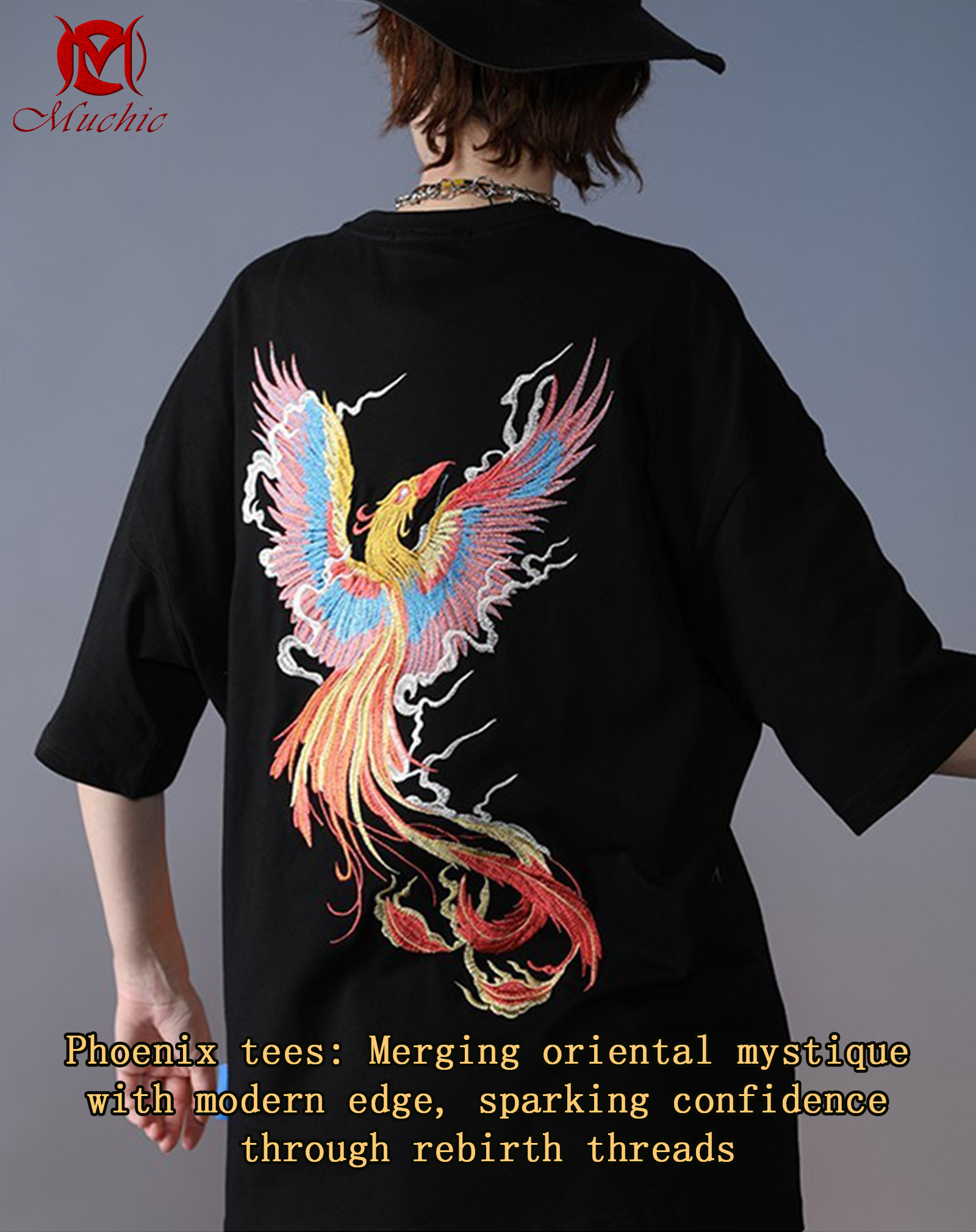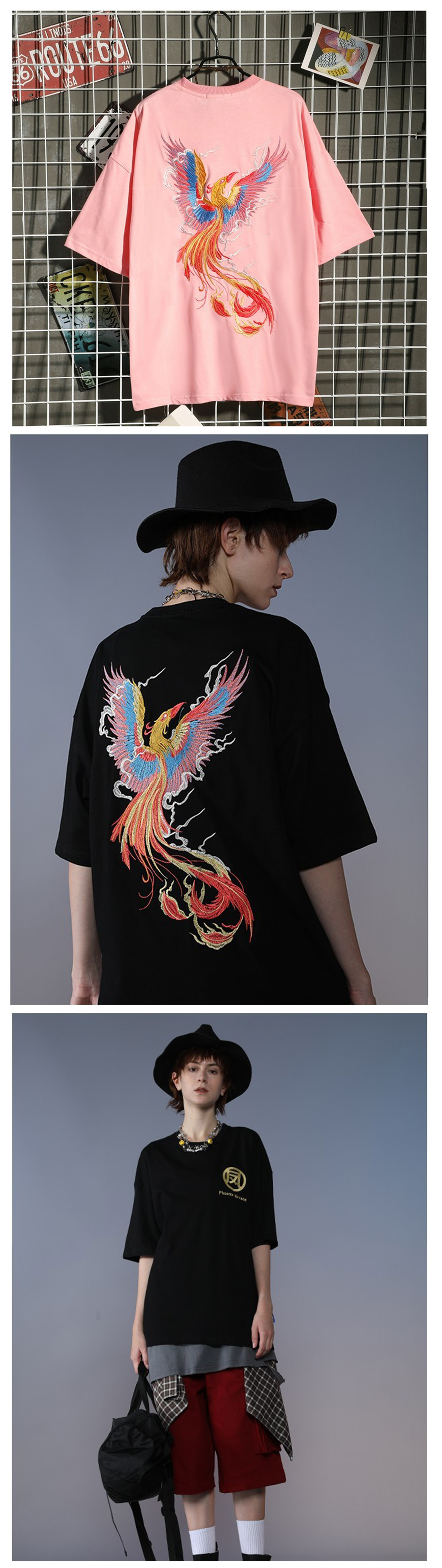 Unisex Intangible Cultural Heritage Phoenix Embroidered T-shirt(Hand Embroidery) (Duty Free)