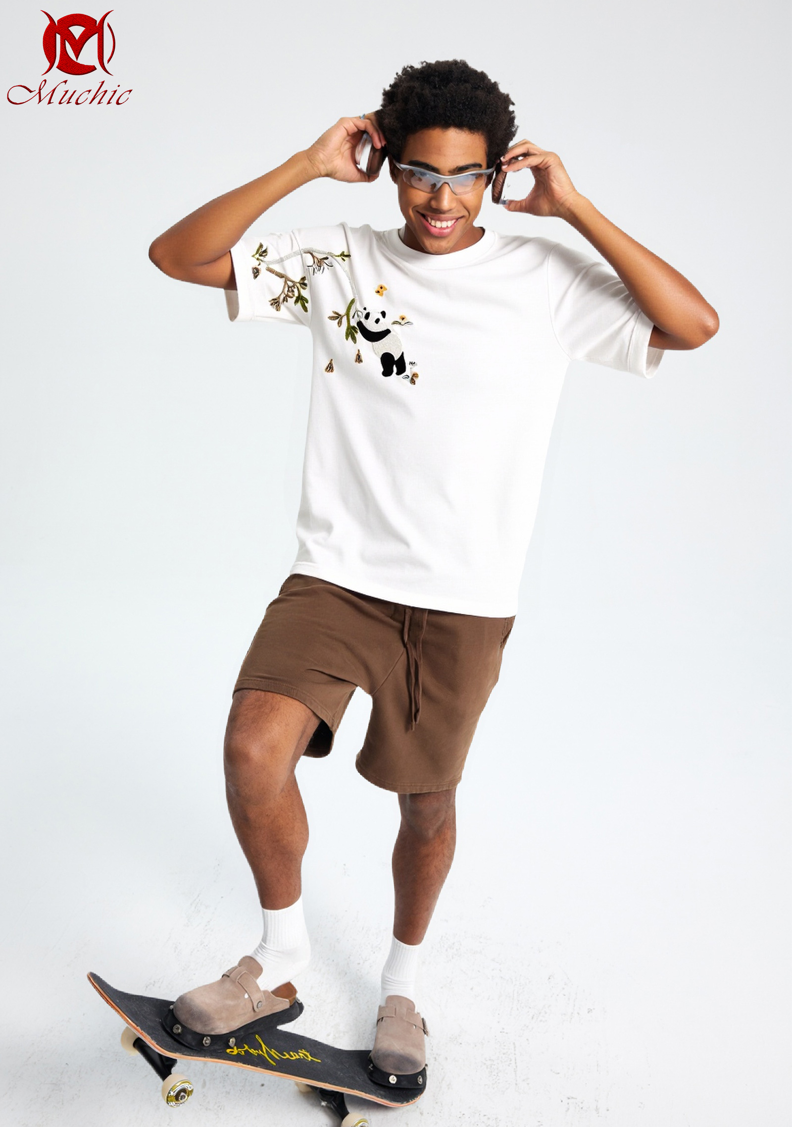 Unisex Intangible Cultural Heritage Panda Bamboo Leaf Embroidery T-shirt (Hand Embroidery) (Duty Free)
