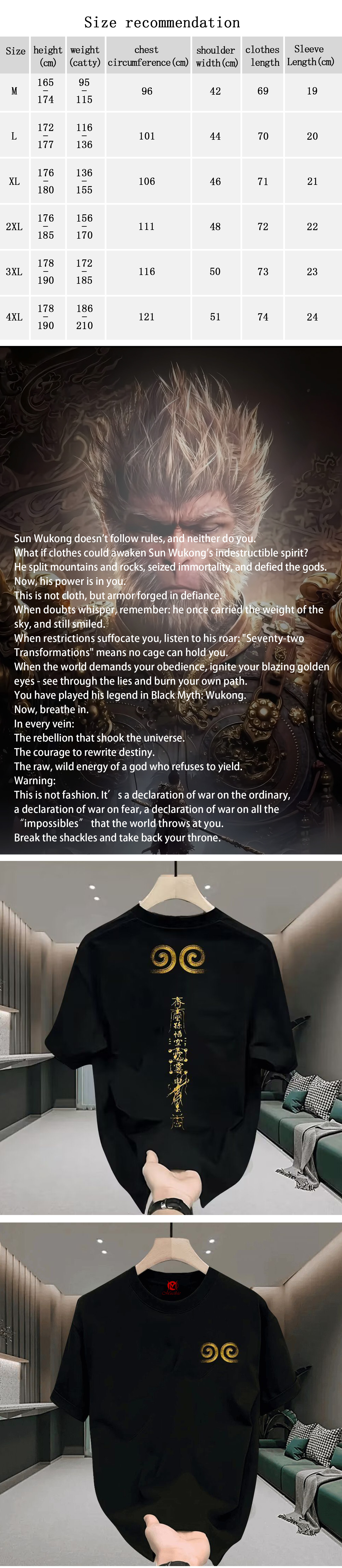Unisex Fashion Monkey King Tight Curse Printed Short Sleeve Loose T-shirt (Duty Free)