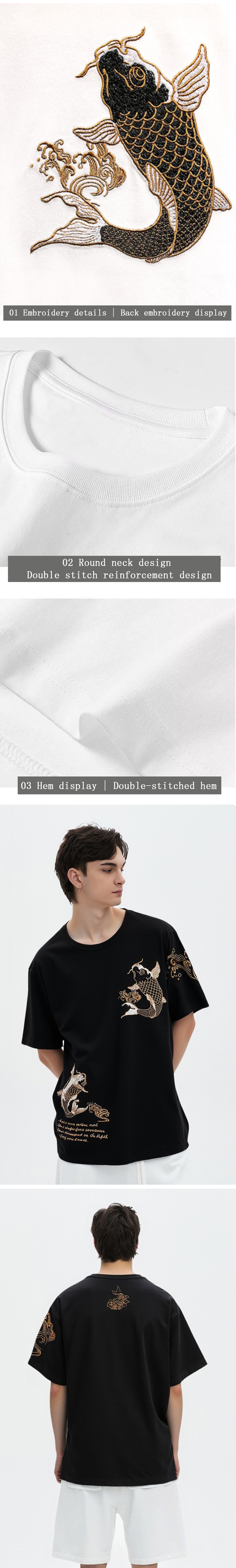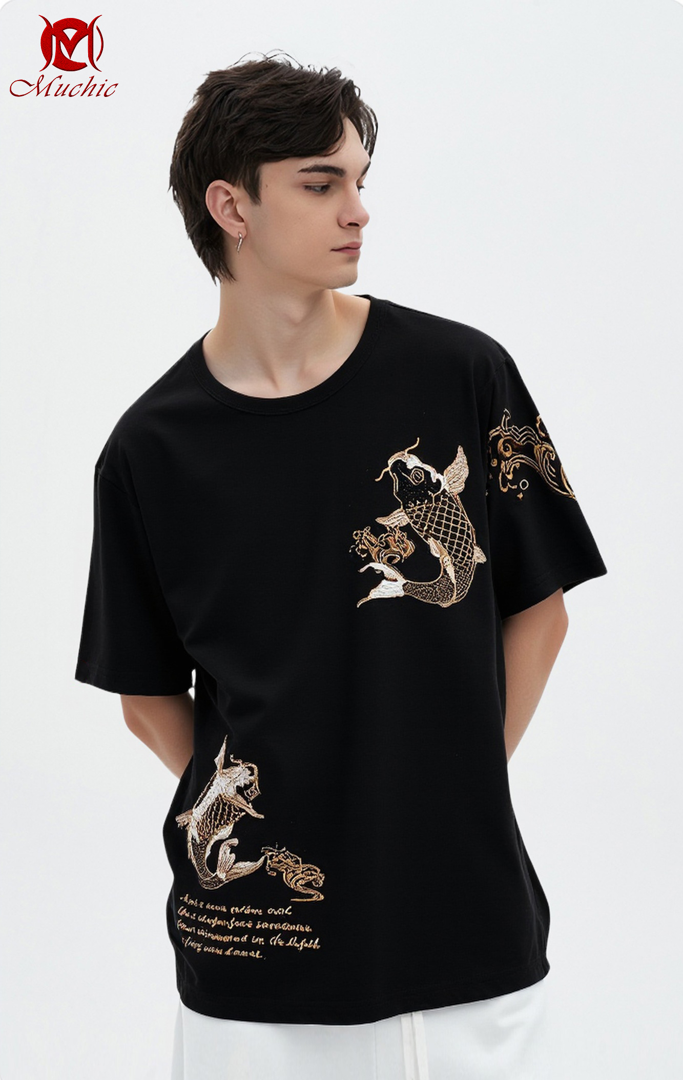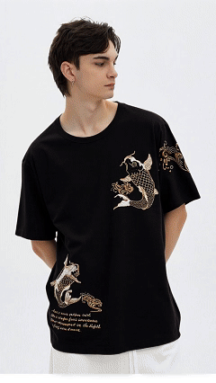 Unisex Intangible Cultural Heritage Twin Koi Embroidery T-shirt (Hand Embroidery) (Duty Free)