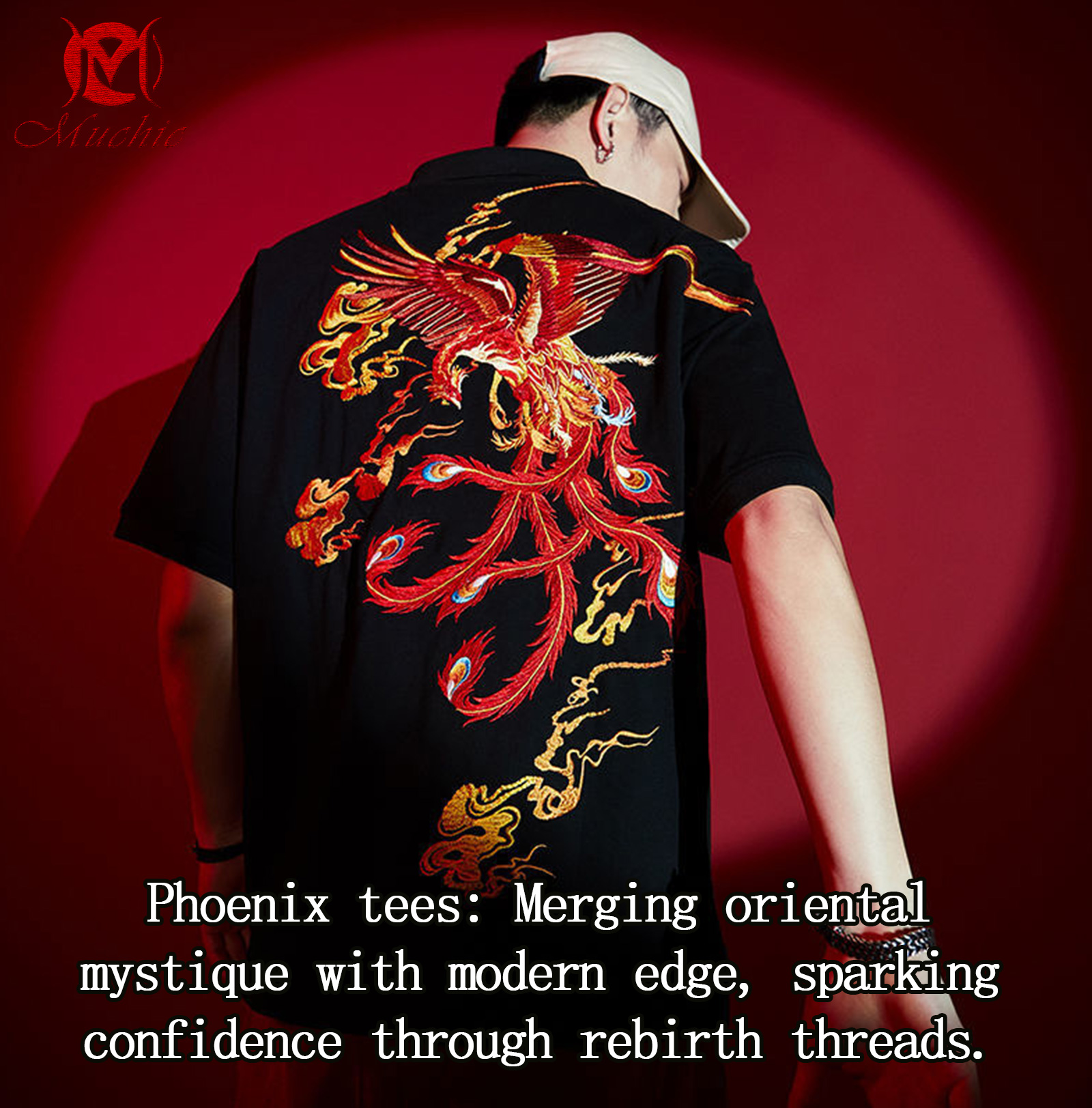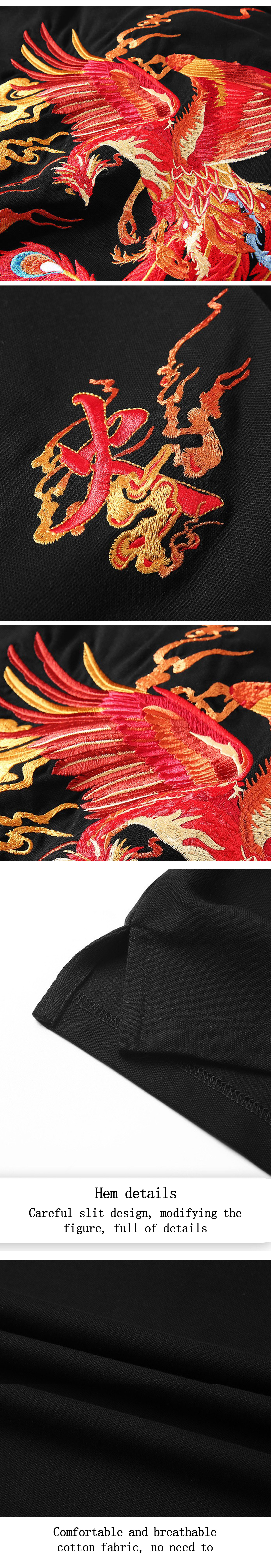 Unisex Intangible Cultural Heritage Fire Phoenix Pattern Embroidered T-shirt (Hand Embroidery) (Duty Free)