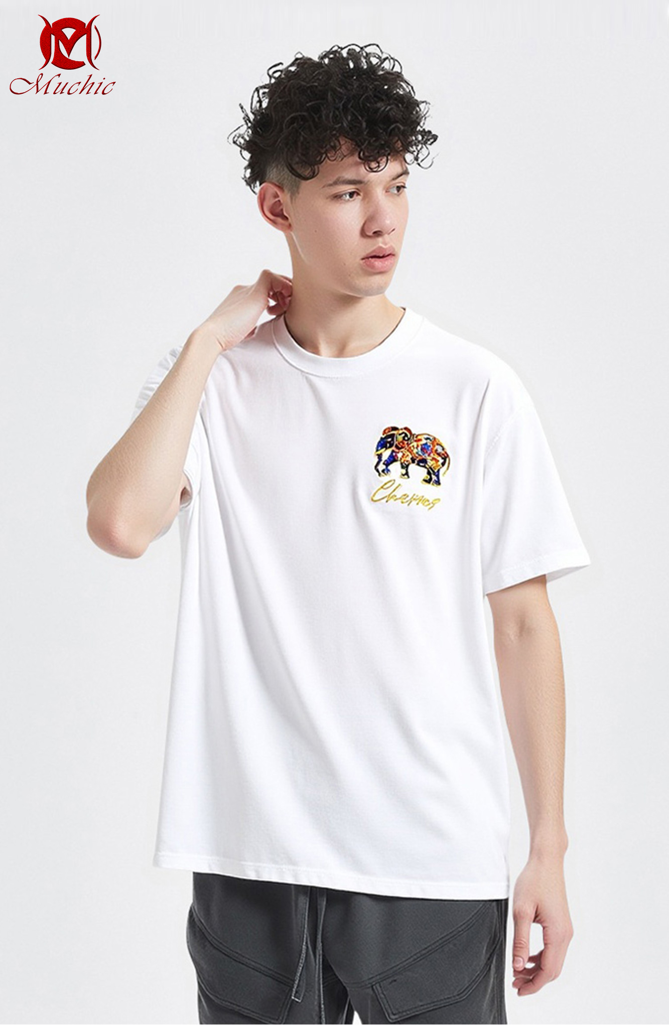 Unisex Intangible Cultural Heritage Elephant Embroidery T-shirt (Hand Embroidery) (Duty Free)