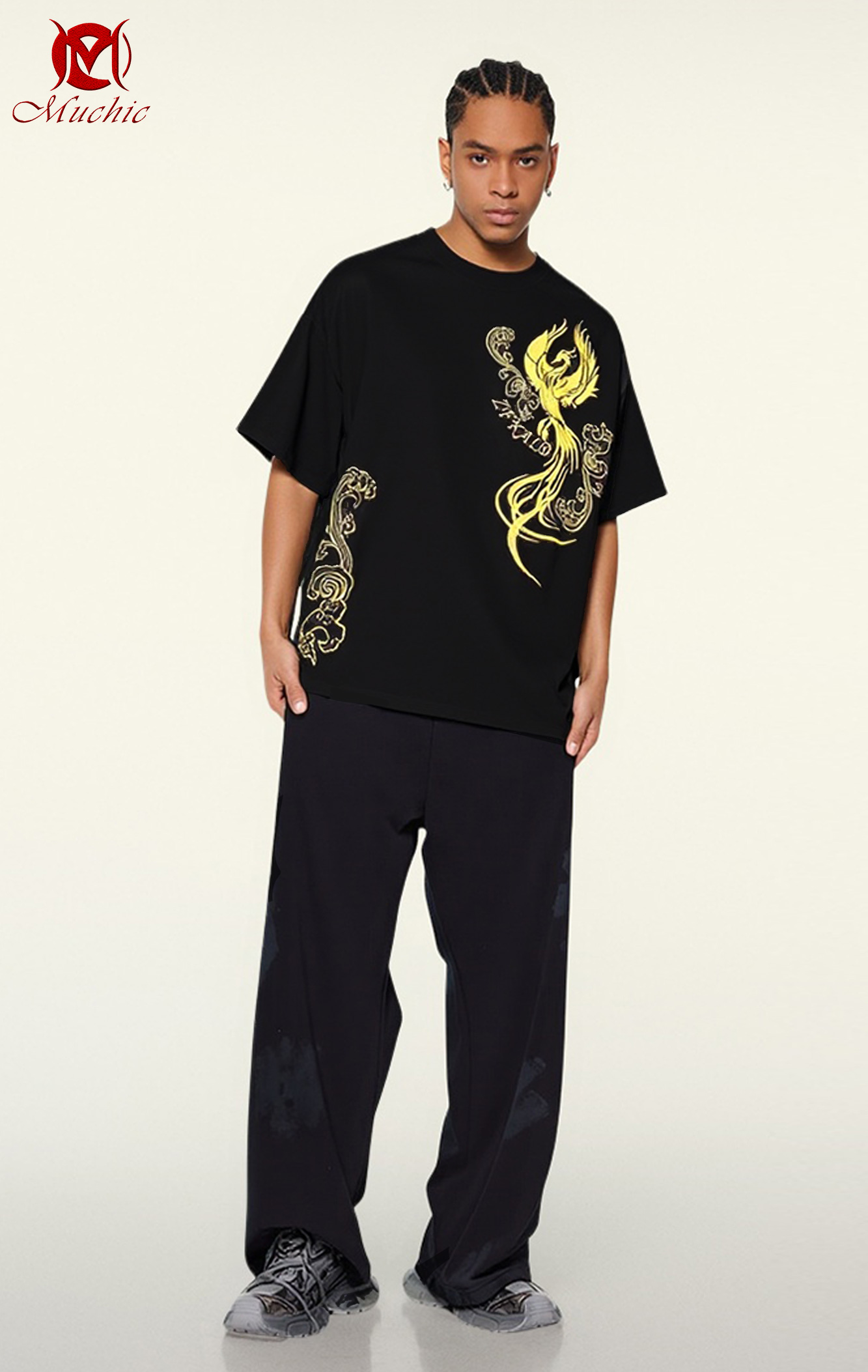 Unisex Intangible Cultural Heritage Phoenix Embroidery T-shirt(Hand Embroidery) (Duty Free)