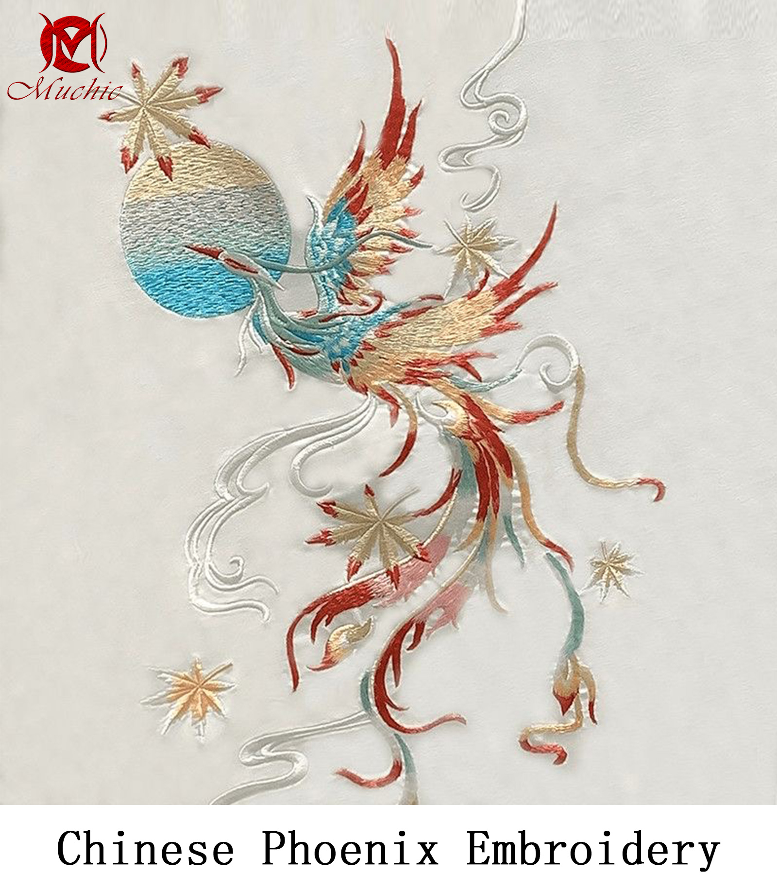 Unisex "Intangible Cultural Heritage Phoenix Flying to the Sun" embroidered T-shirt (Hand Embroidered)(duty free)