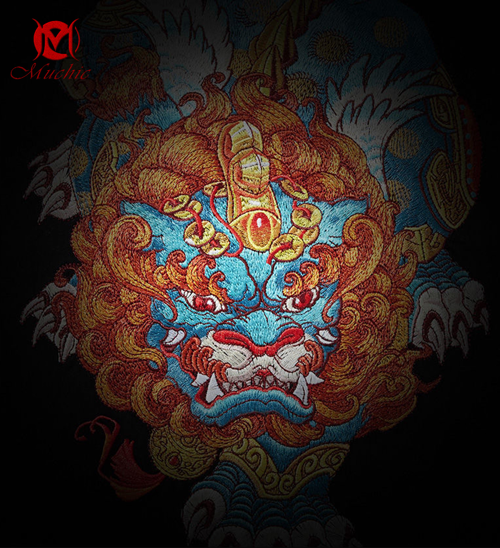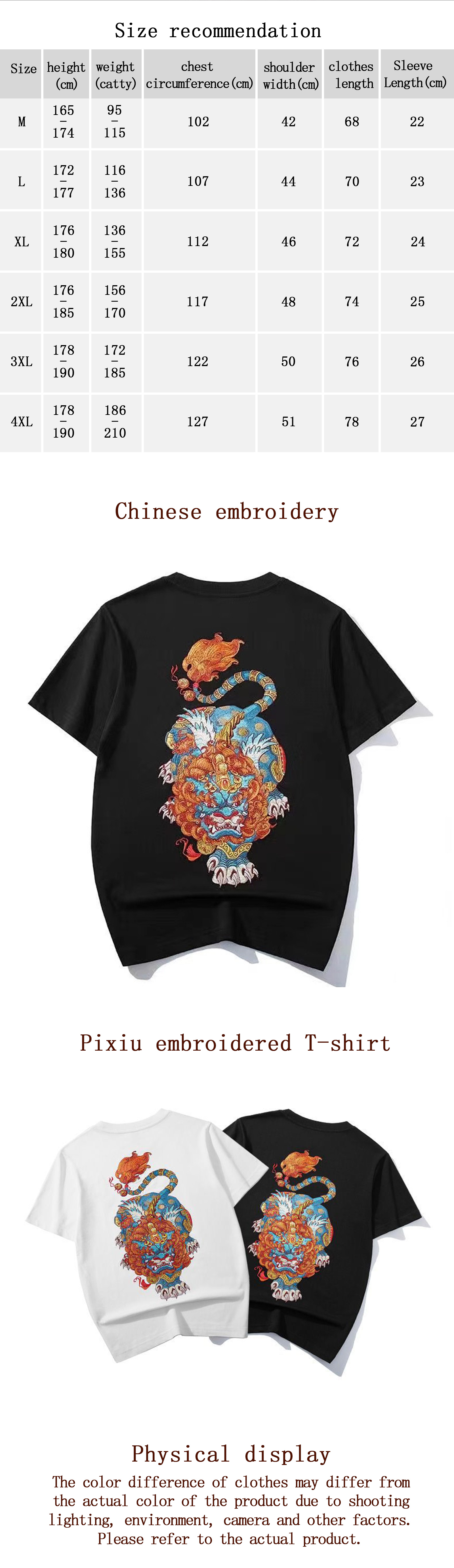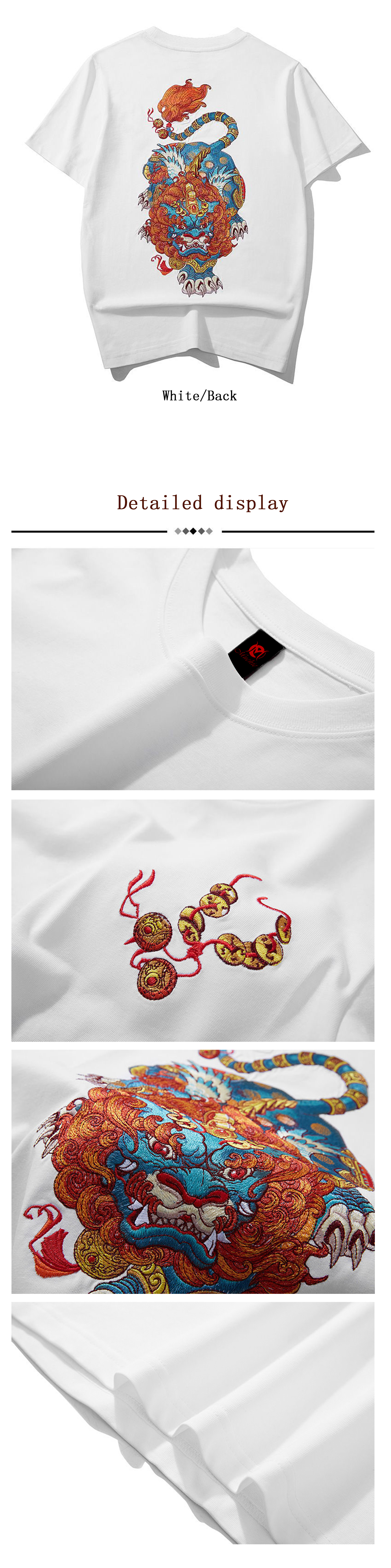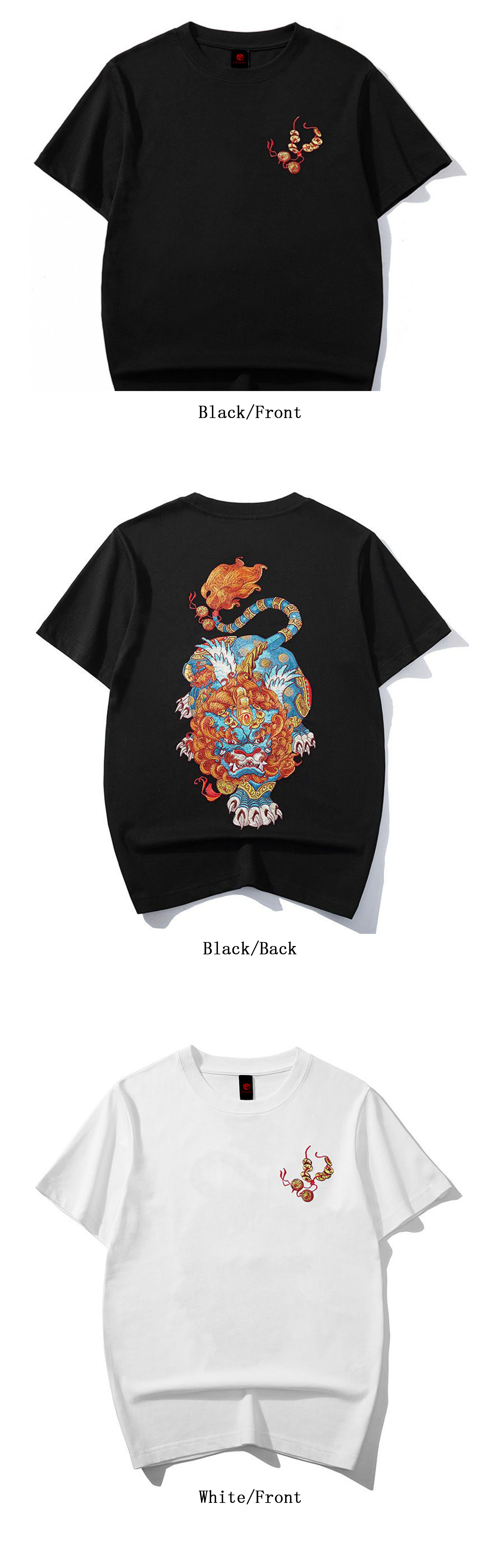 Unisex "Intangible Cultural Heritage 'Pixiu' Pattern Embroidered Printed T-shirt (Hand Embroidered)"(duty free)